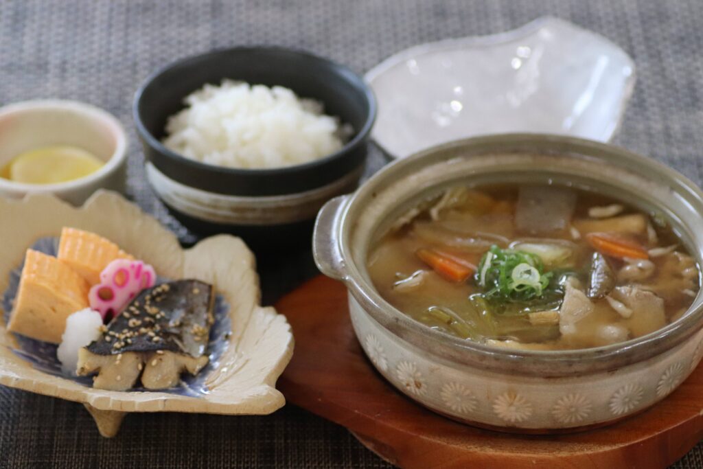 具だくさんの豚汁は、出汁の旨みと野菜の甘みが溶け合い、寒い日にもほっとする味わい。